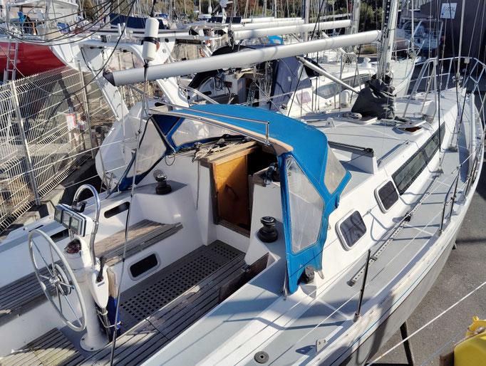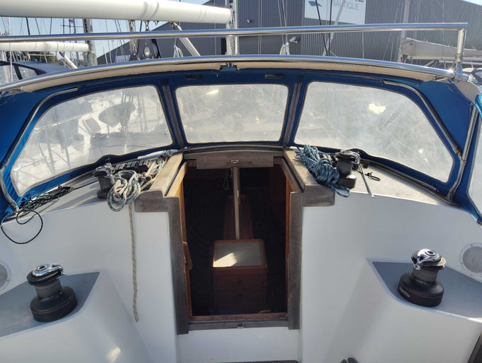 2 x ST44 pour écoutes de génois - 1 x ST 32 + 1 X ST 16 sur roof - Frein de bôme Walder - 2 Marches escamotables en pied de mât - 2 Echelons fixes en tête de mât - Balcons de pied de mât - Aérateurs boites dorades - Cagnards - Taud de soleil (avec récupération d'eau de pluie) - Douchette de pont.
