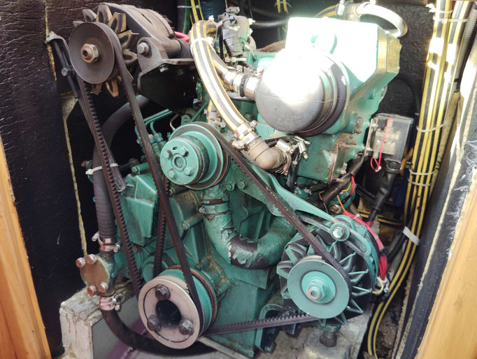 Volvo 2040 D BT, 38 CV - Nombre d’heures : 2 100 heures (estimation) - 2 Alternateurs - Hélice Kiwi Prop installée en 2021. (Mise en drapeau automatique).