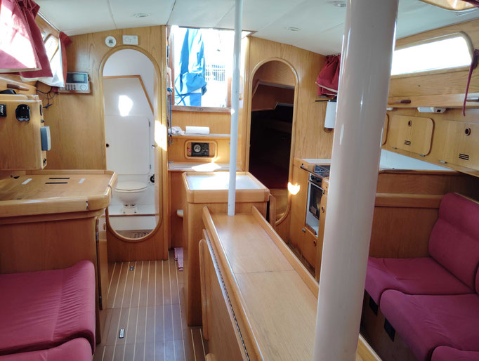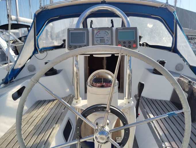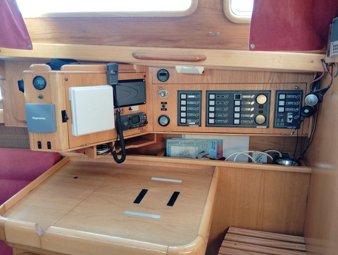Pilote : (de secours) autohelm 2000 sur barre à roue - Radar : Furuno 1623 - BLU : Récepteur Sangean ATS 909X - Casque écouteur avec microphone - PC notepad connecté a la VHF pour traceur de route et AIS - Logiciels Open cpn + cartes, Métofax32 - Tracker Spot neuf 2022 (sans abonnement) - Répétiteur 1 : tridata ST 60+ neuf - Répétiteur 2 : Wind ST60 - Gps Portable Garmin - Compas de route : Plastimo 135 - Sextan plastimo - Radio : autoradio JVC avec lecteur CD 4HP avec bascule VHF/HP - Télévision : Antenne en tête de mât (non branchée) - Antenne BLU.