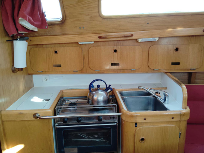 Poêle à gasoil Dickinson (2019) - Dessalator 60L, (membranes à remplacer) - Ballon eau chaude 25L - Toiles antiroulis sur les banquettes de carré -