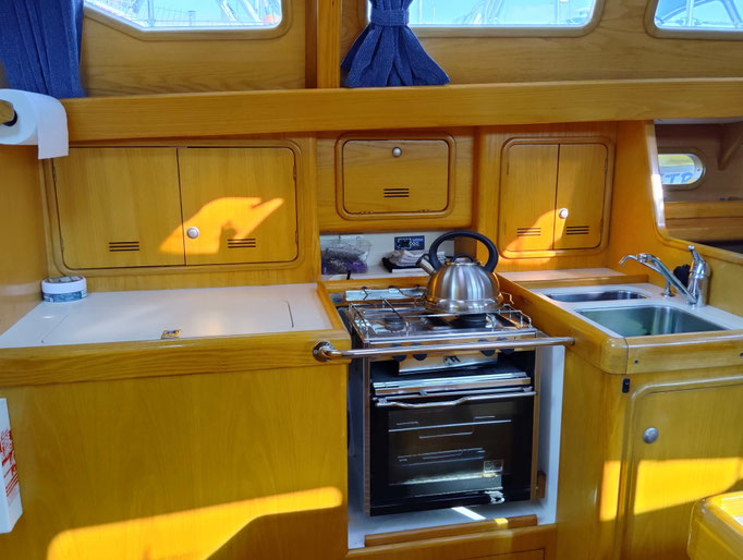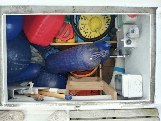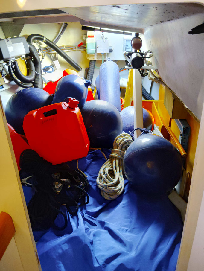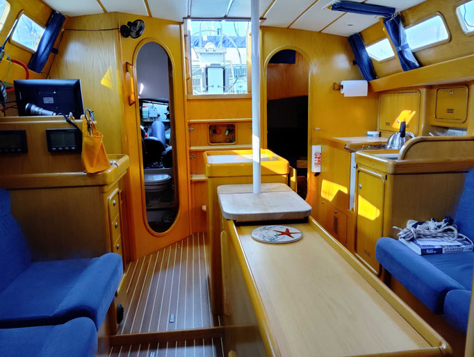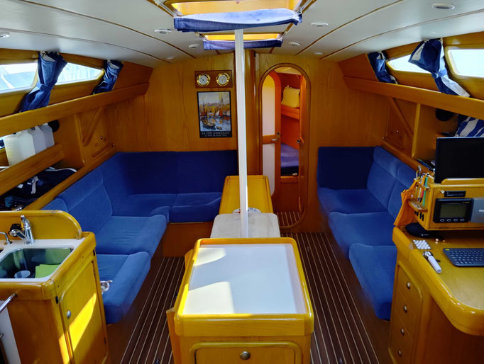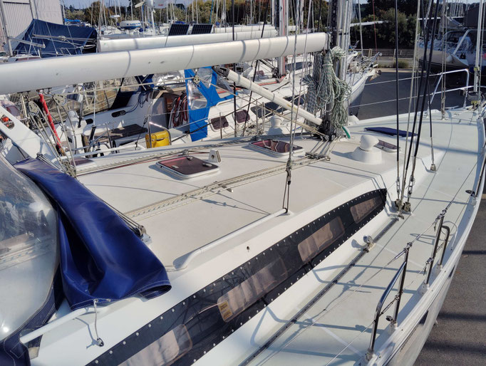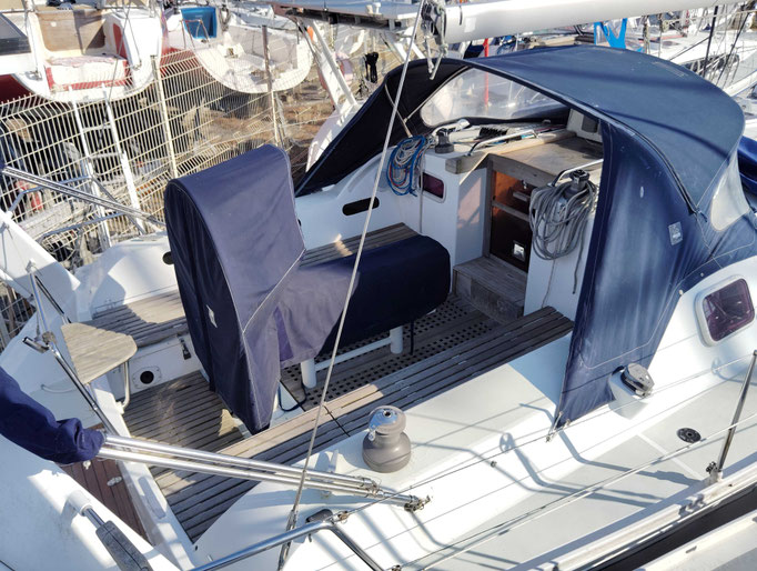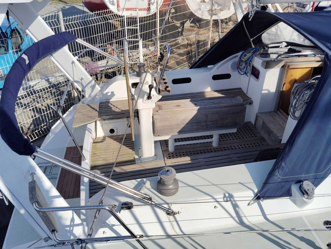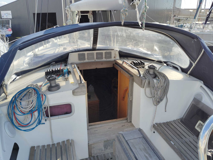 2 x 48ST de génois dans cockpit - 2 x 30ST sur roof - Table de cockpit fixe en teck - 2 Boîtes dorade sur le roof - Capote de descente - Echelle de bain -