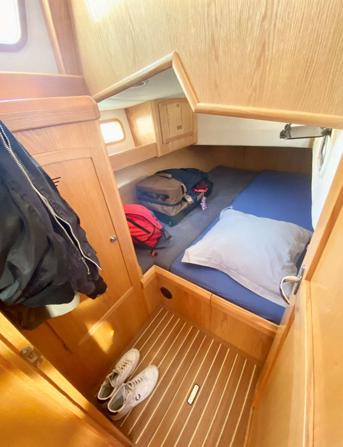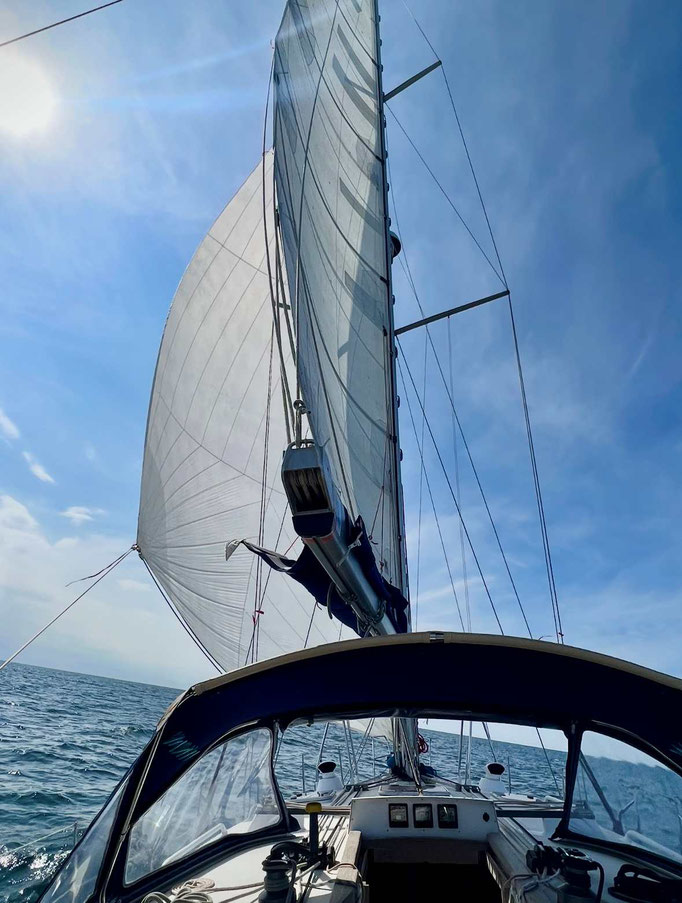 GV fullbatten (révisée 2023) sur chariots à billes Rutgerson, 3 ris automatiques, Lazy bag - Génois sur enrouleur Profurl (révisé en 2024) - Trinquette sur enrouleur Profurl + 2 bastaques - Gennaker sur cadène Selden (2020) - Spi symétrique avec chaussette (excellent état) - Gréement remplacé intégralement en 2020 et révisé par Alubat en 2023 - Tangon carbone (sur mât) - Frein de bôme Sprenger.