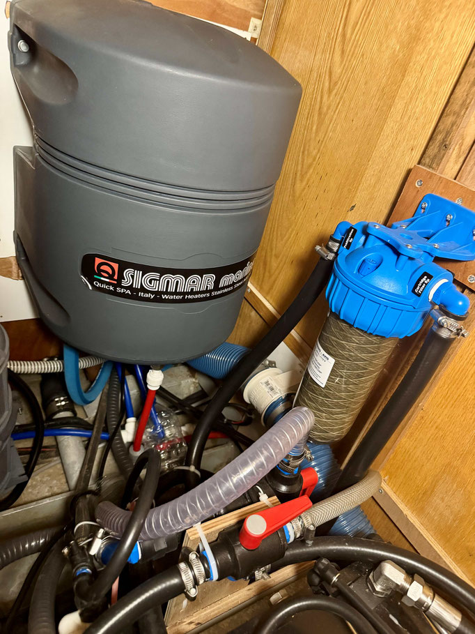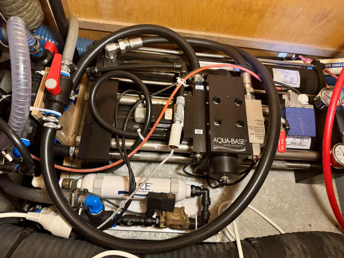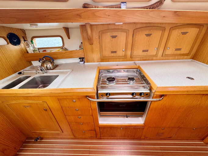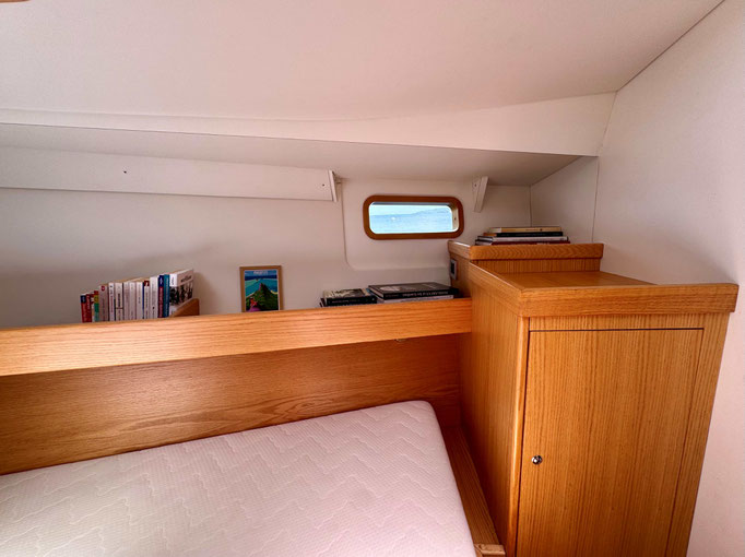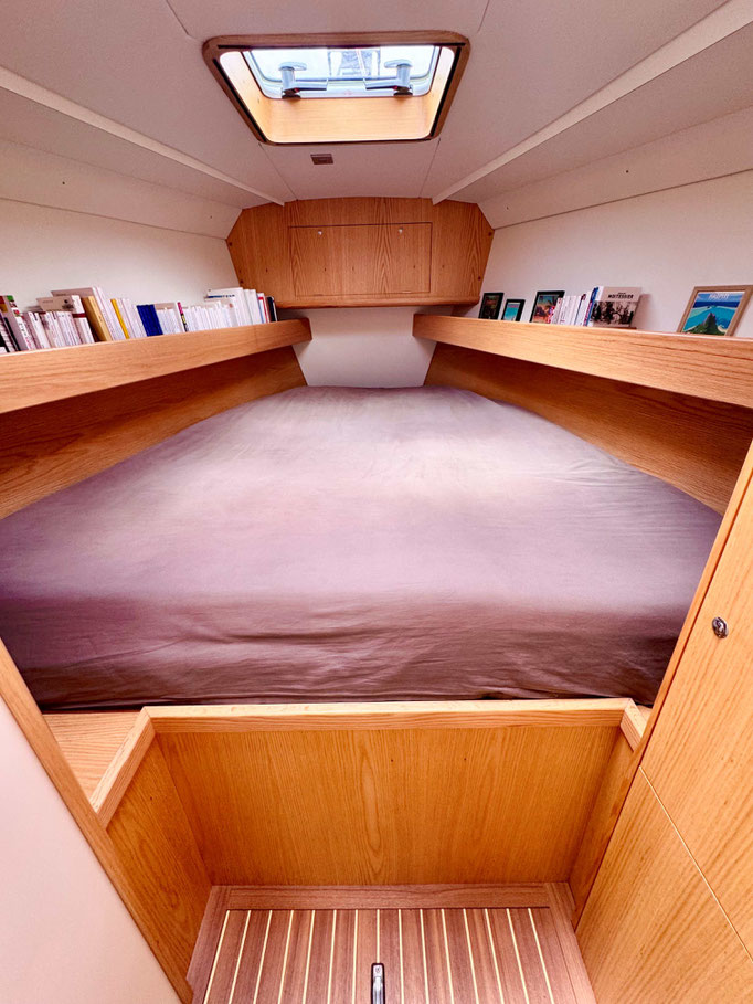 Dessalinisateur Aquabase ESW monobloc (65 litres/ h) complet (2023) - Ensemble de la literie remplacée en 2023 - Cabines équipées de matelas en mousse 35HR épaisseur 12cm en tissu cool Plus déhoussables - Cabine avant matelas + surmatelas à mémoire de forme - Chauffe-eau 40L (2023) - Cuisinière ENO 2 feux + four (2023) - Frigo (moteur / bloc froid / joint d’étanchéité remplacés en 2023) - Mitigeurs neufs (2023) - Réseau eau refait à neuf (2023) - 2 toilettes (2023).