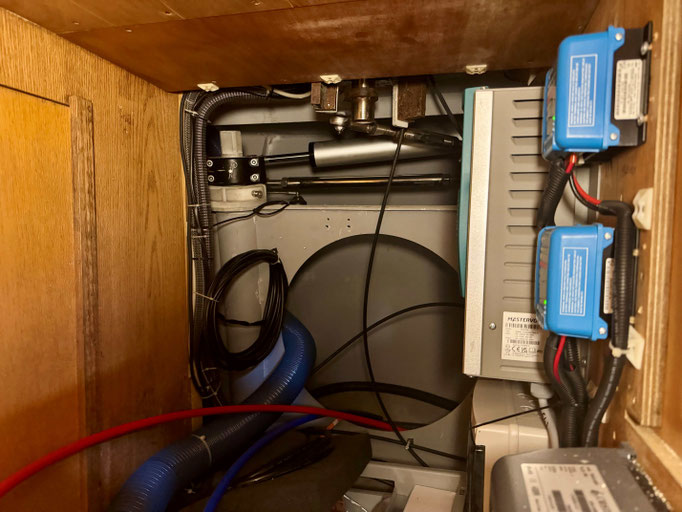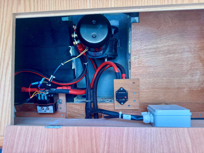 Batteries : 4 batteries service AGM Victron 12V 130Ah (2025) + 1 batterie moteur AGM 12V 90Ah + 1 batterie propulseur +1 batterie guindeau AGM 12V 90Ah (2023) - Moniteur de batteries Victron + historique en Bluetooth - Panneaux solaires (2 x 135W) + régulateur - Eclairage sous portique - Hydro-générateur WATT & SEA cruising 600 (révisé en 2023-2024) - Toutes les ampoules en LED - Moniteur de batteries BTM III 9-35V (2023) - Transformateur d'isolement "Mass GI 3.5" 16A - MasterBus 90-255V 6 Kg - Victron smartsolar MPPT 100/20 - Convertisseur 220 (disjoncteur + prise murale table à cartes) - Victron Phoenix 12/500 - Tableau électrique (2023) - Jauge capacitive eau douce 80-600mm 6-24volt (2023).