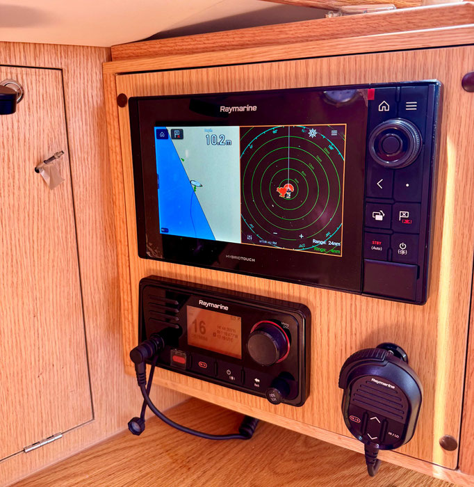 Centrale de navigation /Lecteur de cartes / GPS / AIS Raymarine - Antenne Radar Raymarine Quantum Q24D - 1 VHF fixe émetteur récepteur avec récepteur GPS intégré Ray63 (2023) - 1 VHF portable étanche flottante 6W livrée avec chargeur et clip (2023) - AIS 700 Raymarine - CLASS B émetteur récepteur avec SPLITTER d'antenne intégré + interrupteur mode récepteur sans émission - 1 Antenne Iridium marine fixe posée sur portique + boîtier iridium go -